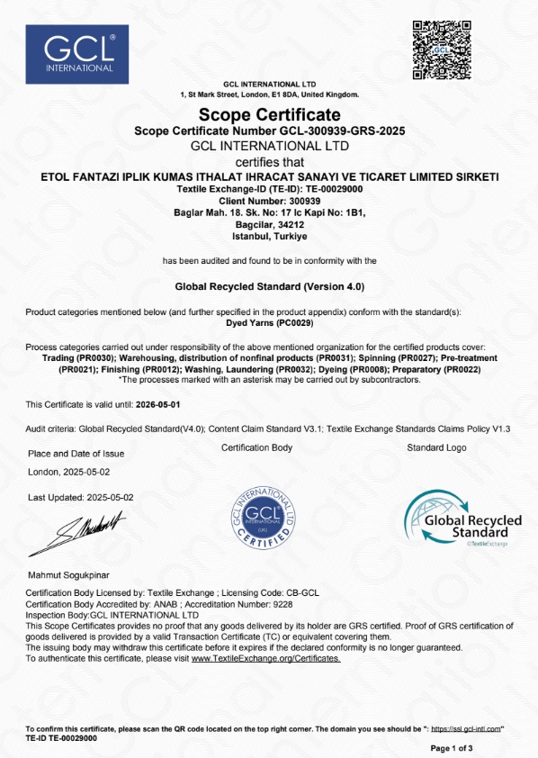 Aşağıda, sahip olduğumuz kalite belgelerini inceleyerek, Lote Triko’nun üretimdeki profesyonelliğini ve kaliteye verdiği önemi yakından görebilirsiniz.